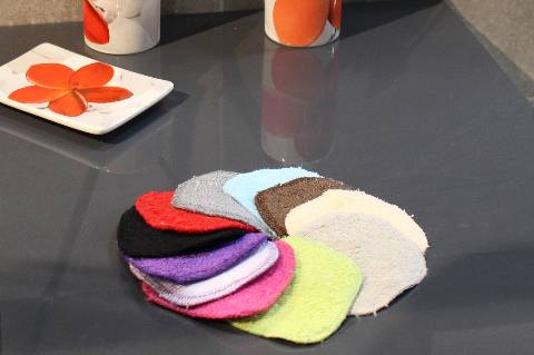 Par lot de 5, et vous pouvez choisir vos couleurs, Biboo vous propose des carrés démaquillants en bambou !